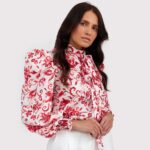 Koszula bawełniana Fiore z wiązaniem pod szyją i bufiastym rękawem