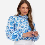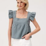 Bluzka wyróżnia się subtelną stójką pod szyją, która dodaje szyku, oraz zmysłowym wiązaniem z tyłu, nadając całości lekkości i wyrafinowanego charakteru. Miękki, przewiewny materiał zapewnia komfort noszenia przez cały dzień, a klasyczny fason idealnie komponuje się zarówno ze spódnicą, jak i spodniami.