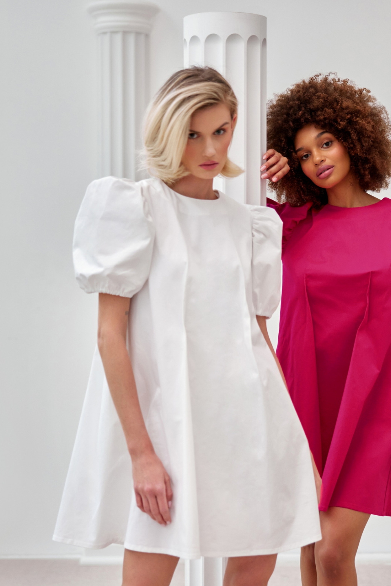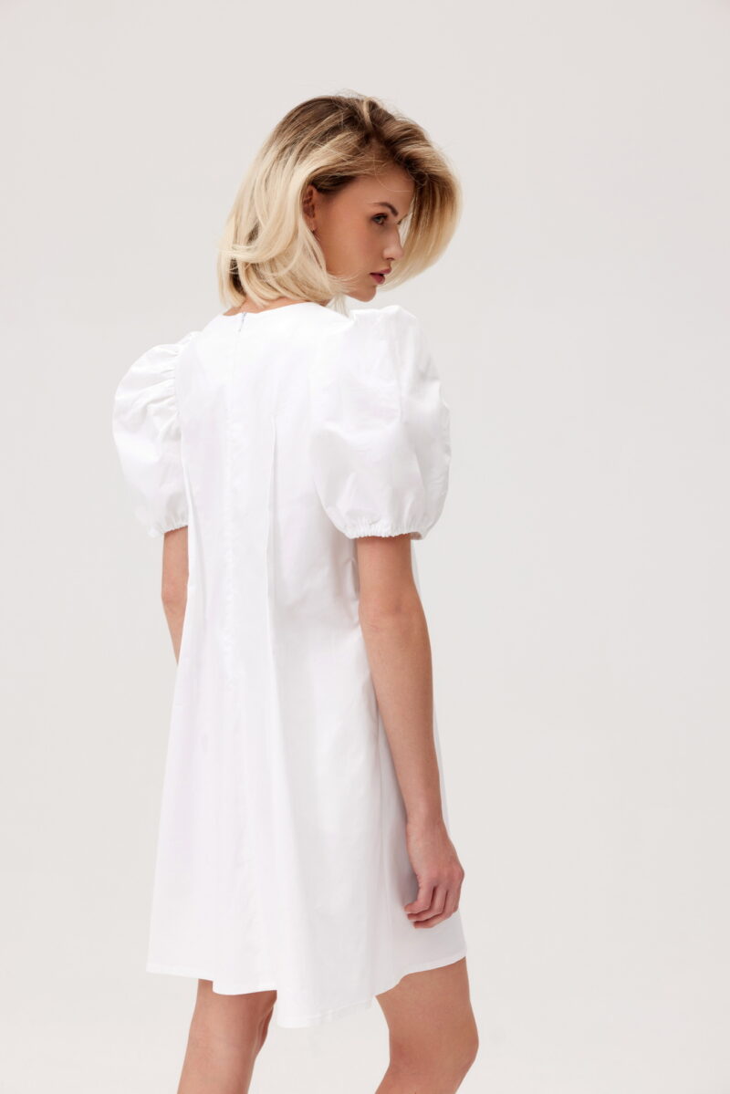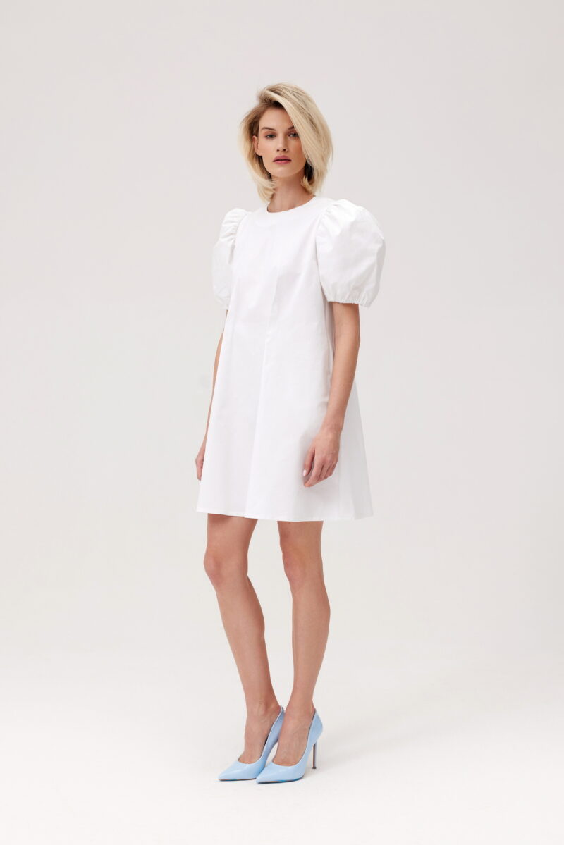 Krótka sukienka wykonana z najwyższej jakości tkaniny bawełnianej. Posiada eleganckie zewnętrzne zaszewki które dodają jej stylu. Sukienka posiada kieszenie. Idealna na letnie spacery i romantyczne wieczory.