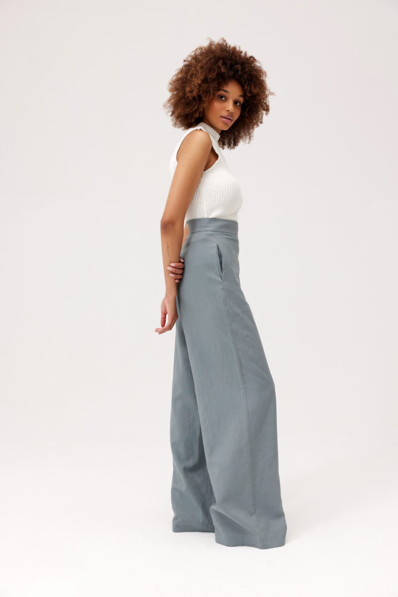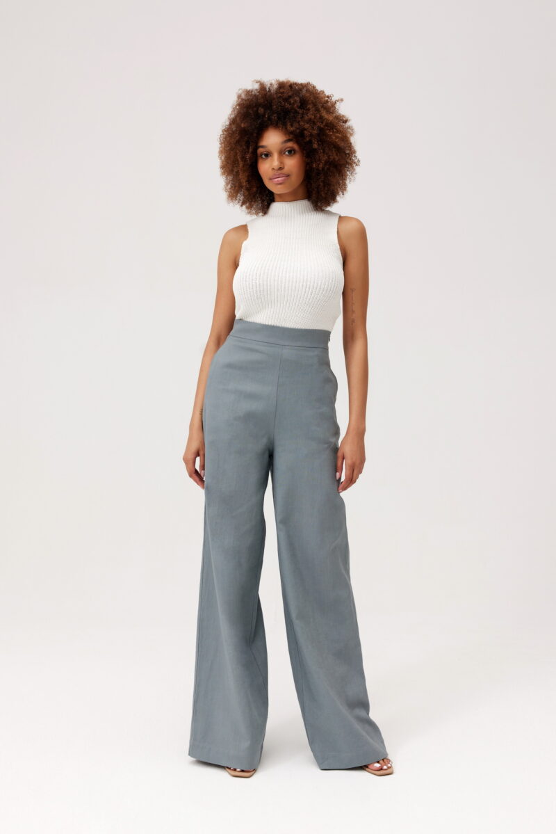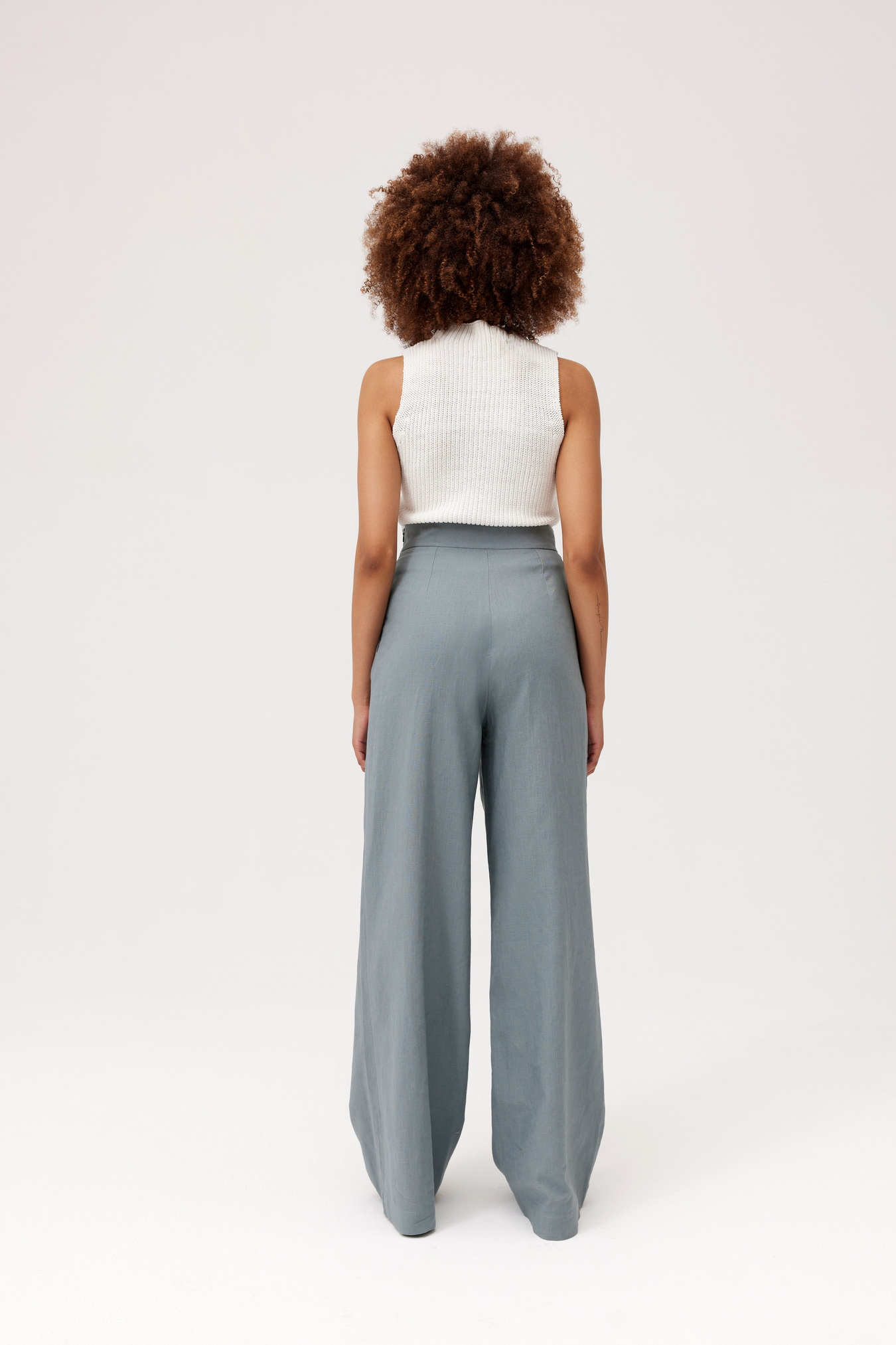 LNIANE SPODNIE LUCCA Z WYSOKIM STANEM (tall) – NIEBIESKIE
