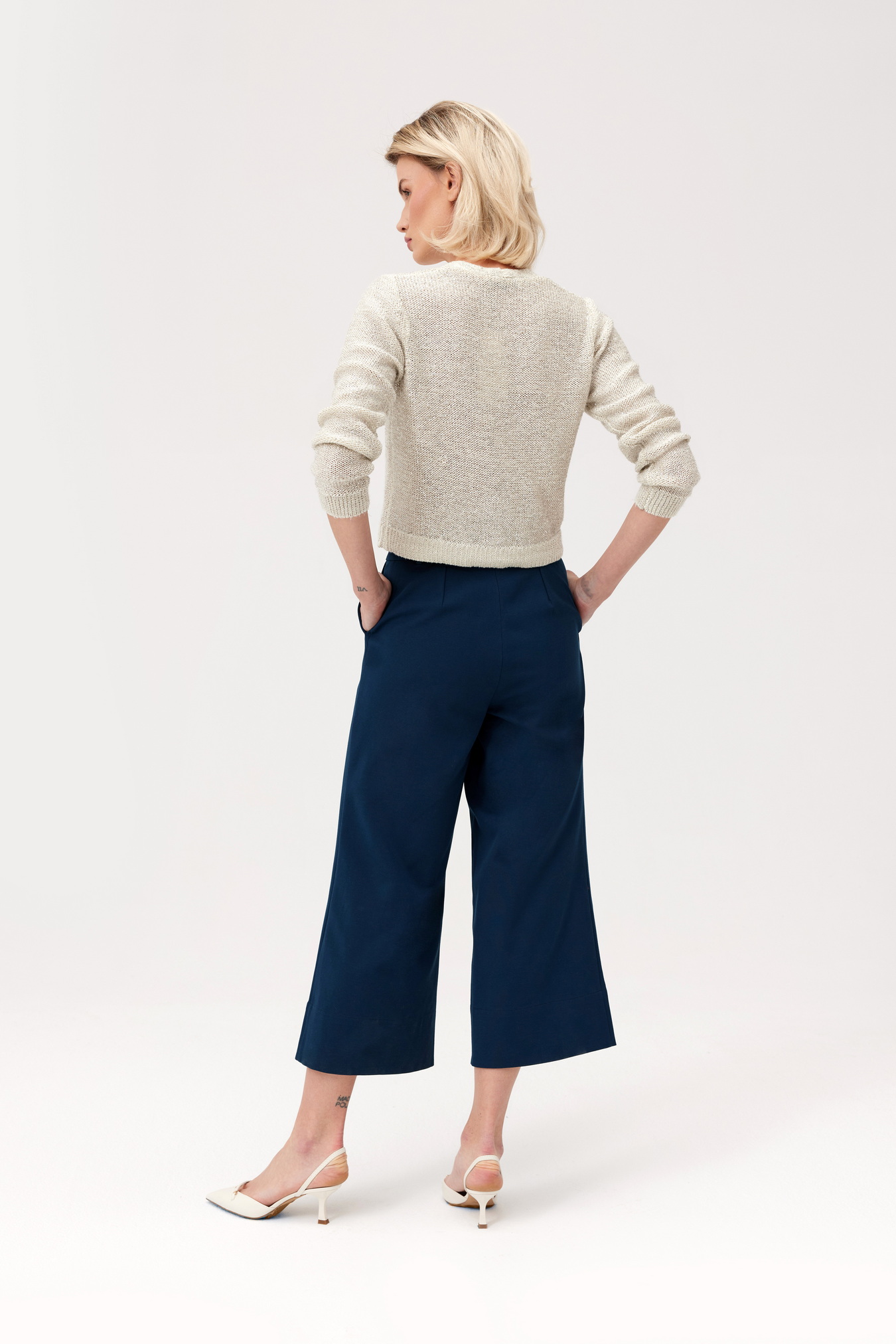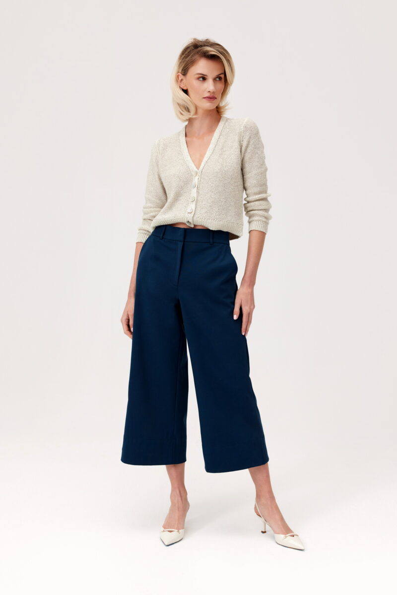 SPODNIE TYPU CULOTTE Z WYSOKIM STANEM- NAVY BLUE